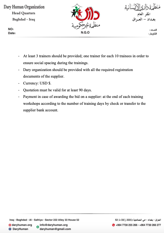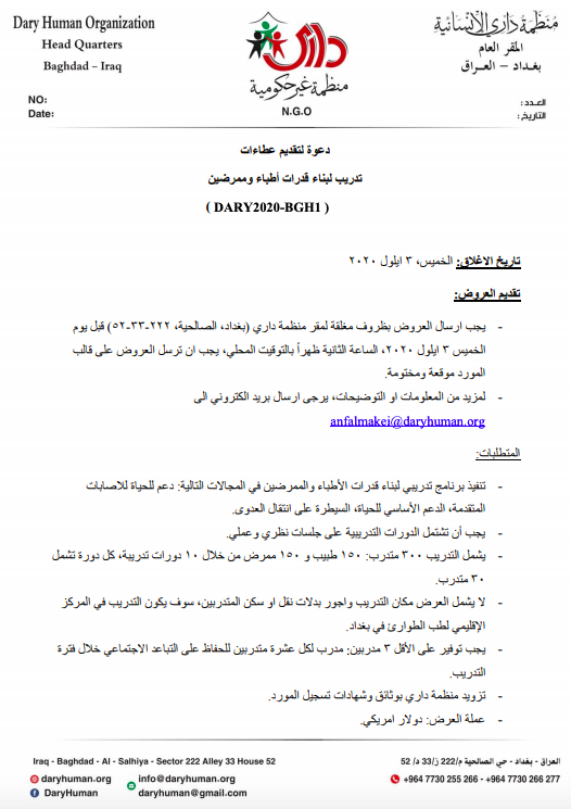 دعوة لتقديم عطاءات تدريب لبناء قدرات اطباء وممرضين (DARY2020-BGH1)